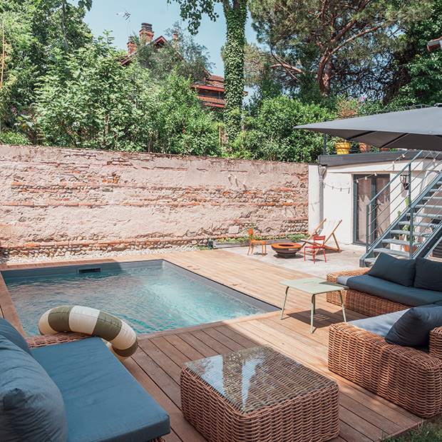 Quartier Croix Daurade à Toulouse, la designer d’espace et coloriste Émilie Peyrille a confectionné un espace extérieur convivial aux couleurs du Pays basque. LA RÉDACTION Un couple de Toulousains a fait construire sa maison dans le jardin des parents de madame. Une amorce de terrasse a permis l’implantation d’une pergola bioclimatique bien agréable