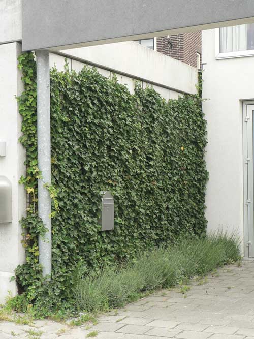 Le végétal (bambous, lierre et autres plantes grimpantes et sarmenteuses) peut au même titre qu’un élément construit (treillis, plessis en bois) habiller ou dissimuler la vue d’un mur aveugle ou d’un élément disgracieux. Les plantes grimpantes (lierre, chèvrefeuille, jasmin étoilé...) peuvent facilement habiller une clôture avec une emprise au sol limitée tout en simplifiant l’entretien par rapport à une haie arbustive traditionnelle.