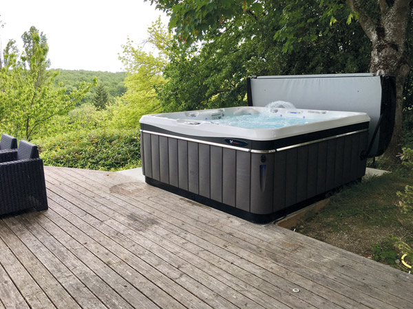 À Saint-Geniès-Bellevue, ce spa modèle Niagara est doté de 52 jets et peut accueillir jusqu’à 7 personnes. Dimensions : 226 x 226 x 97 cm.