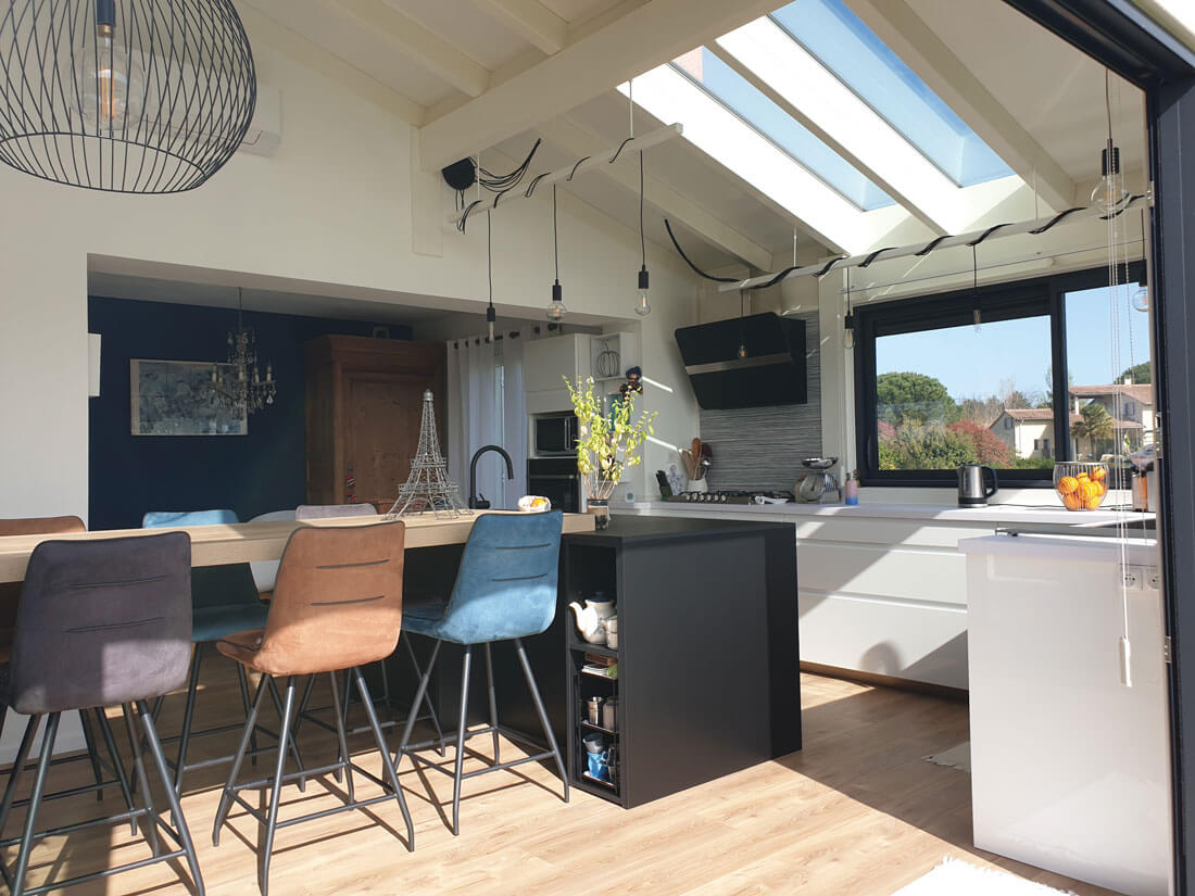 Pour doser la luminosité à l’intérieur de l’extension, des stores californiens et enroulables à réflexion solaire sont installés. Ils renvoient le rayonnement solaire à 85%. Conçus à Limoux par Reflex’sol, ils sont 100% made in France.