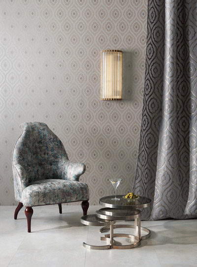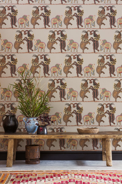 L’Anglais Osborne & Little, né en 1968, est connu pour ses motifs très forts, formés de billes de verre sur intissés. Il édite aussi les collections du couturier Matthew Williamson qui réédite en papier peint et tissu d’ameublement les motifs de ses robes. Mais aussi la créatrice Nina Campbell, dans un esprit typiquement anglais. La puissance des motifs oblige à réserver ces papiers peints à une petite surface : une tête de lit, un soubassement, un pan de mur…