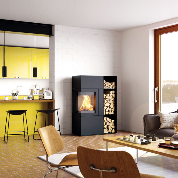 Le mobilier de chauffage fait son entrée dans les foyers. Rangements, portes bûches, contenant pour pierres réfractaires, sièges… les modules sont pratiques et esthétiques. Le poêle à bûches Dexter 2.0 d’Austroflamm vous fascinera avec ses différentes combinaisons de modules. Ouverts sur un côté, ils peuvent servir de range-bois, d’étagères ou de contenants à