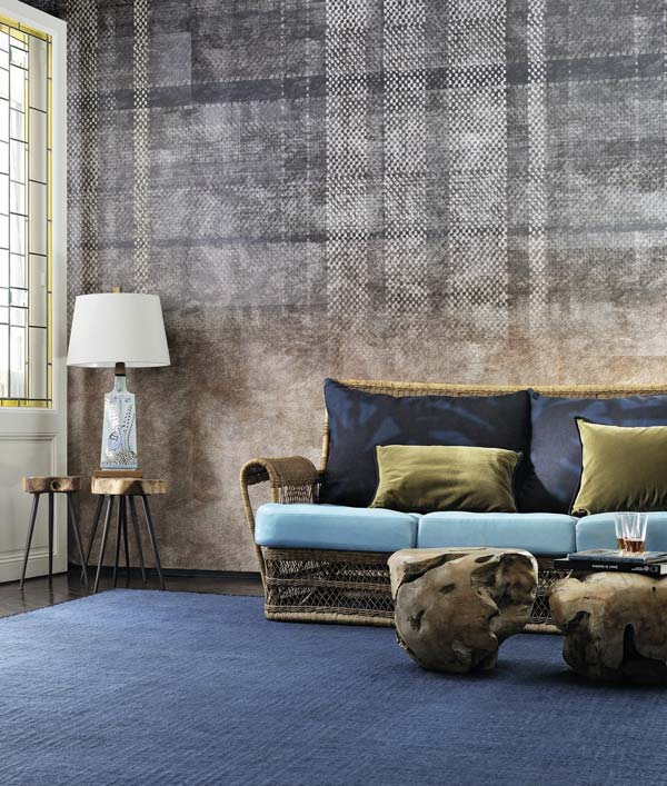 Aux confins de l’art et de l’artisanat, sa collection Manado, parue cette année, est en écorce de bananier peinte et papier de soie sur intissé. Elle se pose sans raccord.