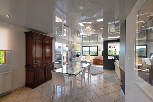 Miroir. Plafond tendu à effet laqué pour cet espace de vie. © Barrisol. 2010. Normalu.