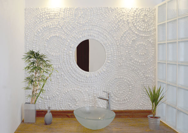 Mosaïque en crédence dans une salle de bains.