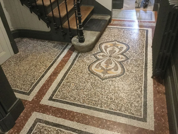 En tant qu’artisane, Ariane Blanquet propose également ses services aux architectes, aux décorateurs et aux particuliers pour des travaux parfois moins personnels. « Souvent les gens ignorent qu’on existe et préfèrent recouvrir de carrelage une mosaïque ancienne plutôt que de la rénover. » Heureusement ce n’est pas toujours le cas. Dans une maison du quartier des Chalets à Toulouse, on l’a sollicitée pour rénover, et compléter dans l’esprit, une mosaïque datée du XIXe siècle au sol d’un long couloir. Actuellement c’est une mosaïque ancienne dans une maison de la place Belfort à Toulouse qu’elle rénove. On fait également appel à elle pour créer des mosaïques en parement mural, en crédence, dans un salon, une salle de bains, une cuisine… ou au sol comme pour une cour d’immeuble par exemple. « Dans la sphère publique comme dans la sphère privée, la mosaïque ornementale offre d’innombrables possibilités plastiques. Tant en décoration intérieure qu’extérieure, elle anime sur-mesure les espaces et les volumes par le jeu réciproque de la matière et de la lumière. »