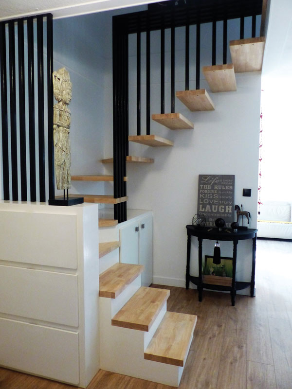 Réaménager un rez-de-chaussée, réorganiser des pièces, transformer une entrée en agrandissant le séjour, déplacer un escalier et une cloison. Ses clients ont des souhaits qu’elle exhausse. « Je ne mets pas de règles, explique la gérante de Nowo. Dans le design, il n’en faut pas. Les contraintes et les goûts du client libèrent des espaces de création. »