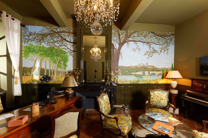 Panoramique pour le salon d’affaires de la Maison des Consuls****. « Cette œuvre a contribué à l’obtention de la 4e étoile de cet établissement logé dans un bâtiment historique de la cité de Mirepoix ».