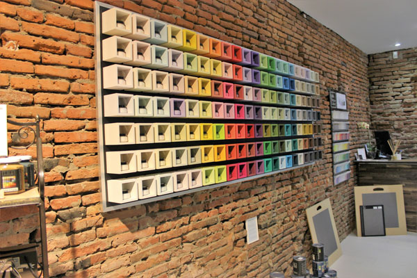 « Je suis une amoureuse de la couleur », revendique Christine Gourdon, gérante de la boutique Effet & Nuance, située en plein cœur de Toulouse, rue du Canard. Mur en brique et plancher peint en blanc, Effet & Nuance est le seul endroit de tout Midi-Pyrénées où vous trouverez la marque de peinture Little Shop of Colors, réputée pour ses milliers de couleurs aux teintes intenses. L’échantillon présent dans la boutique donne déjà envie de tout repeindre chez soi, et même d’aller repeindre chez les voisins. « Little Shop of Colors est une peinture haut de gamme, made in France. Elle contient très peu de COV (composés organiques volatils). Facile d’application, elle est très souple à étirer, très couvrante et a un bon rendement. Ce sont des teintes non diluées à base de pigments naturels. Leurs mises en œuvre sont toujours aisées même pour des non professionnels. » Après une vingtaine d’années dans le bâtiment, Christine Gourdon a posé ses valises à Toulouse et créé la boutique Effet & Nuance. « Ma féminité a repris le dessus. J’ai voulu mêler décoration intérieure et qualité des produits. » C’est pourquoi elle a sélectionné des marques, avec toutes un petit plus qui fait de grandes différences. Effet & Nuance commercialise aussi le béton ciré sans résine époxy de Little Shop of Colors, très facile à appliquer, teinté sur-mesure, doté d’une élasticité qui évite tout problème de microfissurage. Parmi ses revêtements de sols et de murs, laissez-vous surprendre par ses dalles vinyles, son parquet contrecollé en chêne aux lames larges (jusqu’à 45 cm) et immensément longues (jusqu’à 4,50 m), ses mosaïques ultra faciles à poser grâce à un film adhésif au dos de la plaque, ou encore ses panneaux décoratifs imitant la pierre ou la brique… à s’y méprendre.