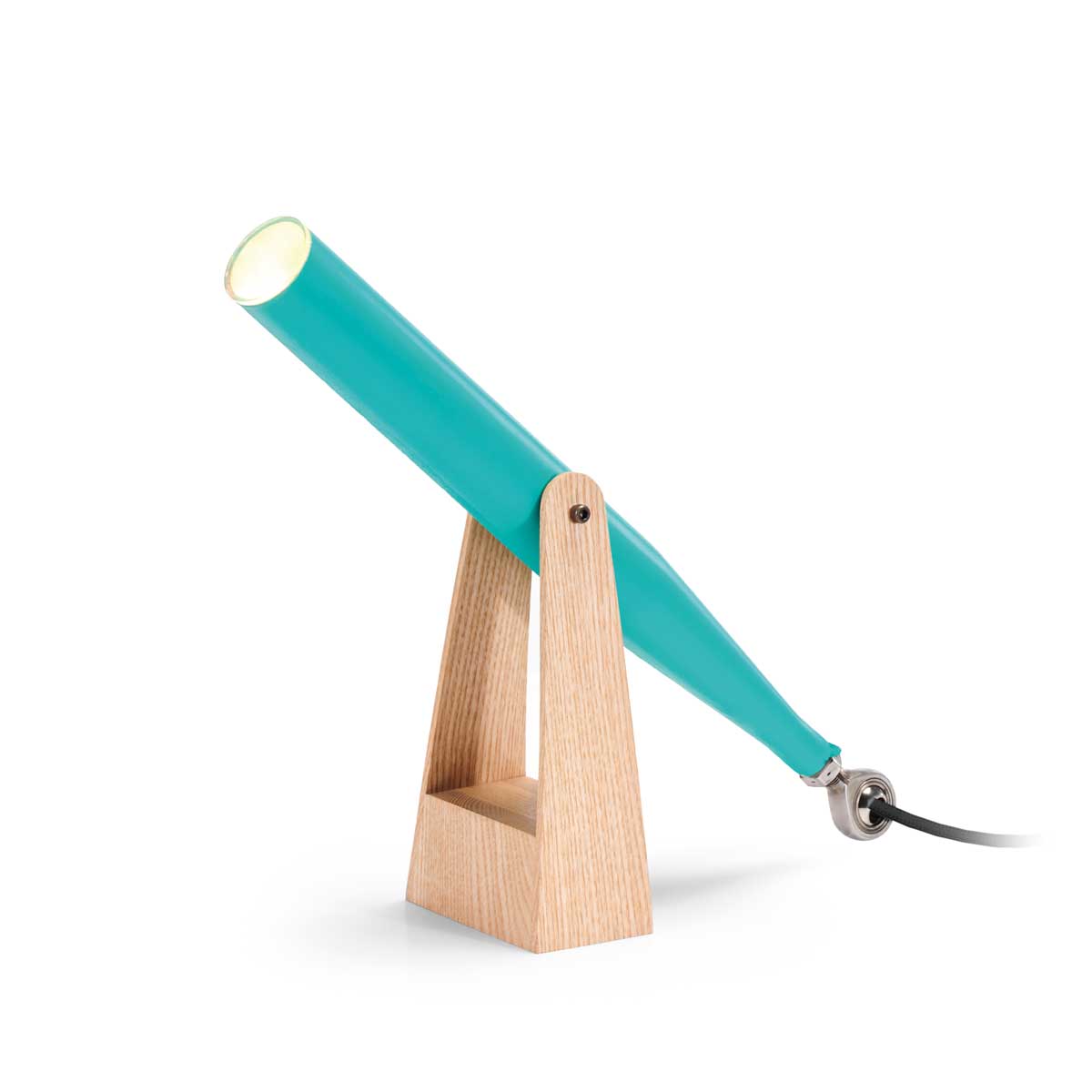 Jérémy Grondin participe également au projet d’Airbus « A Piece of Sky » qui permet la revalorisation de pièces d’avions en fin de vie en objets d’art. Ci-dessous, le tabouret « Memory » réalisé à partir d’une boîte noire des 1er vols d’essais en frêne et cuir et ci-dessus un luminaire conçu à partir de bielles d’avion montées sur support mobile.