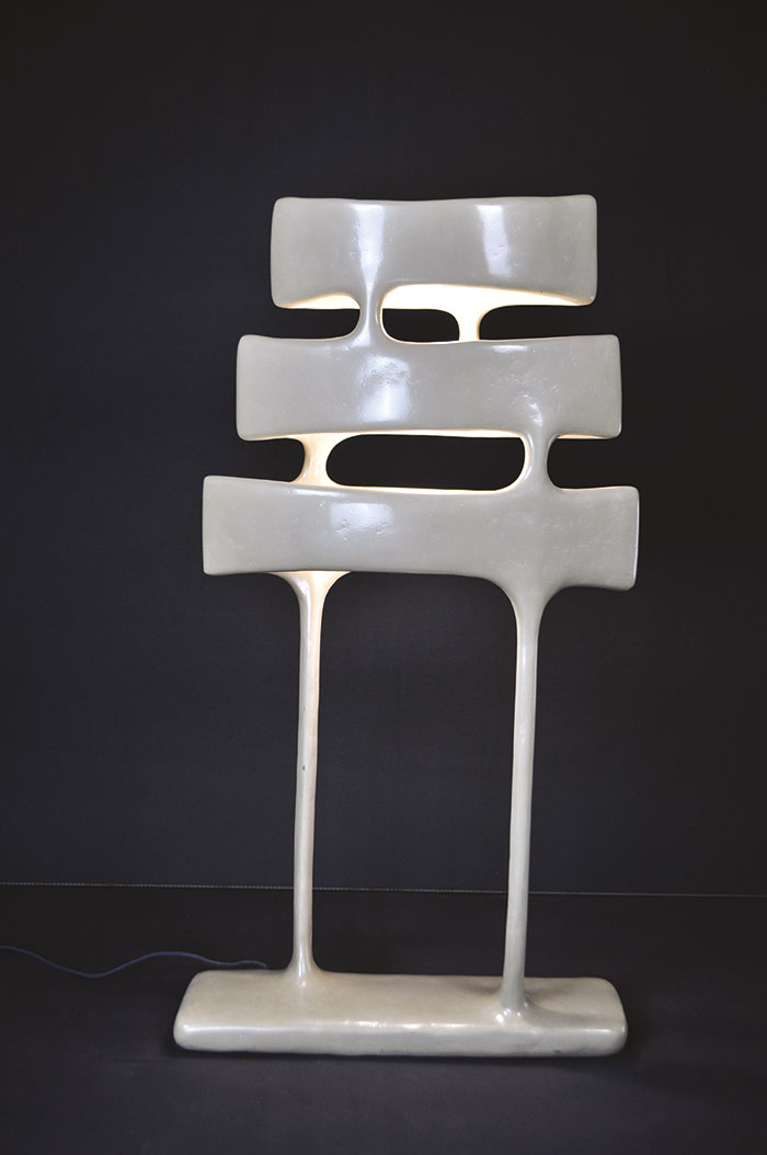 Chacune de ses œuvres est unique et fait l’objet de toute l’attention de l’artiste. Certaines d’entre elles ont réclamé plus de 6 mois de travail et de soins. La plupart du temps, le Tarn-et-Garonnais produit deux lampes par mois. Joël Bartz a su faire preuve de détermination et de travail acharné. « C’est avec le temps et la pratique que j’ai finalisé une recette très personnelle de pâte à papier argileuse pour créer des sculptures lumineuses. Je commence par fabriquer une structure et armature en béton, métal ou bois sur laquelle j’appose mon système électrique. Je recouvre le tout avec le mélange en couches successives. Une fois sec, je procède à un ponçage minutieux et applique différentes huiles, pigments et vernis pour la finition. »