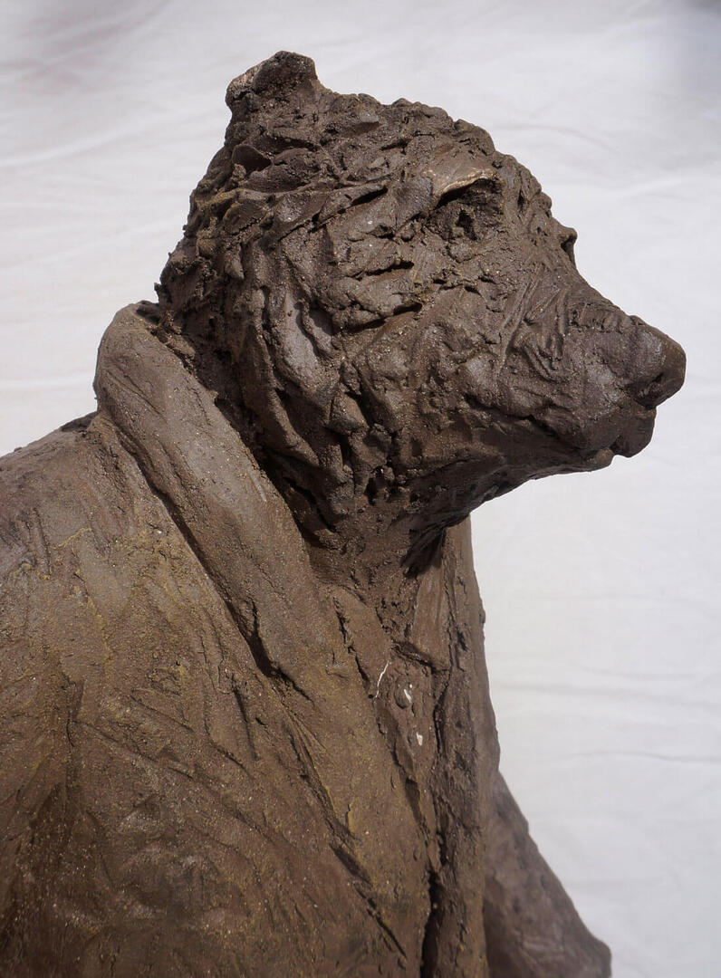 Du haut de ses 52 cm, « Monsieur Ours » de la série Manimal tient une place inestimable dans la collection de l’artiste. Réalisé en 2017 à partir de terre chamottée noire, Barbotine Ciselet a décidé de ne pas le colorer pour garder un aspect authentique.