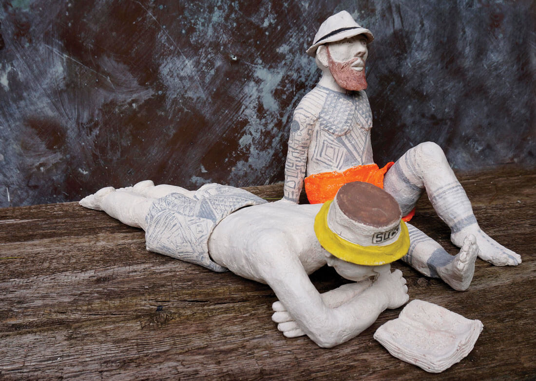 Pour réaliser ses personnages, l’artiste utilise de la terre chamottée. Un matériau qui lui permet une grande liberté dans le modelage et dans la conception de ses œuvres.