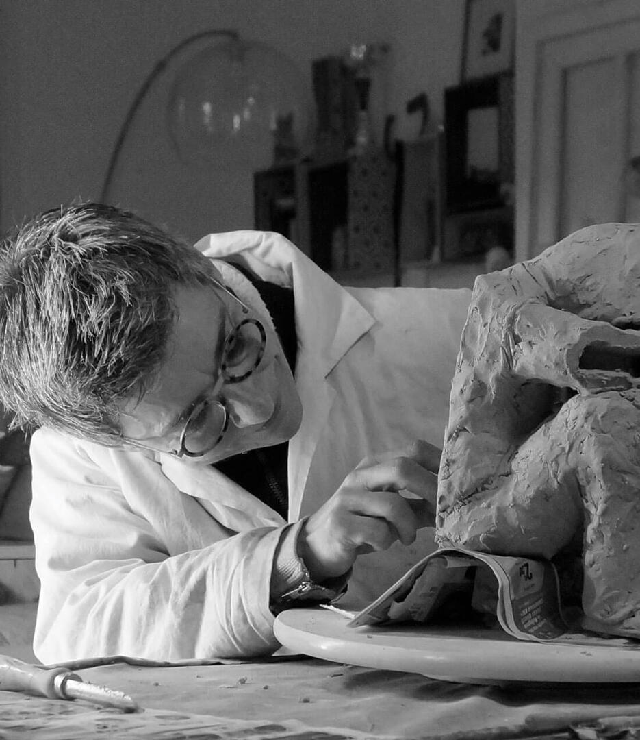 « Je commence par réaliser la sculpture. Une fois le résultat attendu atteint, je demande à mon compagnon et parfois à ma fille un regard extérieur. Ils arrivent à être objectifs et à me donner des conseils constructifs sur l’aspect, la couleur ou même la forme. La critique me permet d’évoluer. » Une fois les avis de chacun pris en compte, la céramiste se met au fourneau. « Après trois à quatre semaines de séchage, je fais cuire la sculpture entre 1000 et 1300 degrés pendant 48 heures. J’utilise ensuite un mélange de pigment et de cire pour ajouter de la couleur. Enfin, je finis par la patine pour accentuer l’éclat des teintes. »