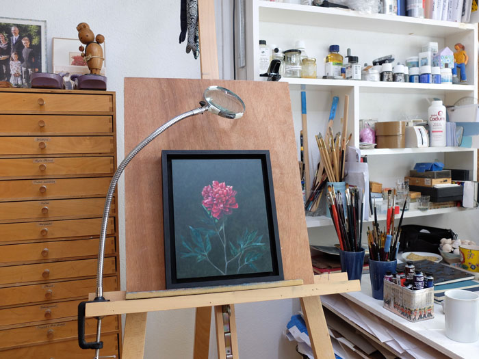 Création de l’œuvre « Pivoine » dans son atelier toulousain.