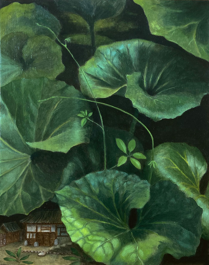 Huile sur bois « Suo’s garden ». 20x25cm. 2021.