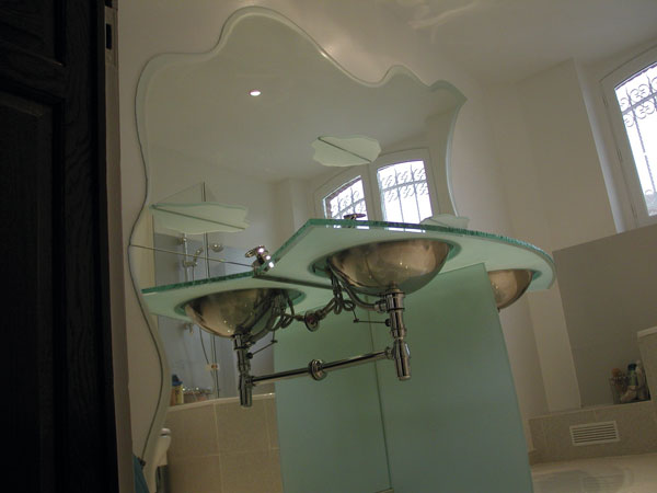 Miroir et plan vasque en verre.