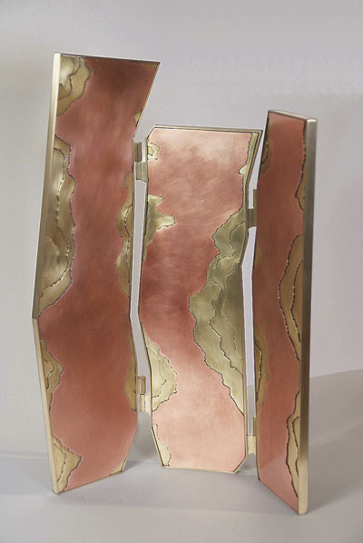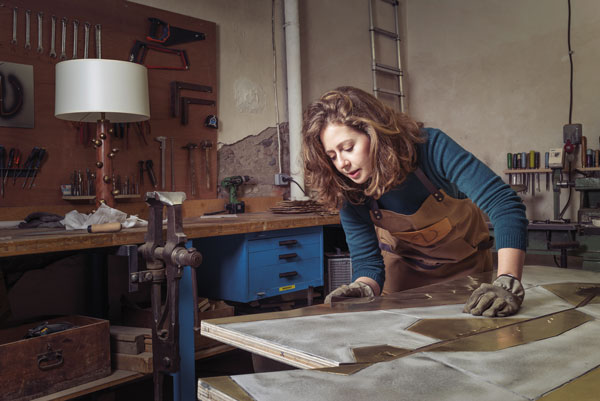 Comme un clin d’œil à son parcours de baroudeuse, c’est juste derrière la gare Raynal, dans le quartier Bonnefoy, que Laura Demichelis installe ses machines pour couper, ciseler, souder... Là, elle y dessine, modélise, croque, planifie et réalise ses pièces en bronze mais aussi cuivre et laiton. Des pièces, uniques ou en série limitée, qui s’inspirent de ses expériences, de son regard sur le monde. La lampe « Bourgeon », constituée d’un abat-jour en coton, d’un pied en chêne et de « bourgeons » en bronze, rappelle ces arbres exotiques où les fruits poussent directement sur le tronc. « Chaque bourgeon est unique », précise l’artiste qui a façonné chaque moule en silicone. Lors de notre visite, Laura Demichelis travaillait également à un paravent « Sismologie ». Les trois vantaux mêlent cuivre et laiton dans un graphisme rappelant les fonds océaniques vus de haut. Un véritable appel à prendre le large.