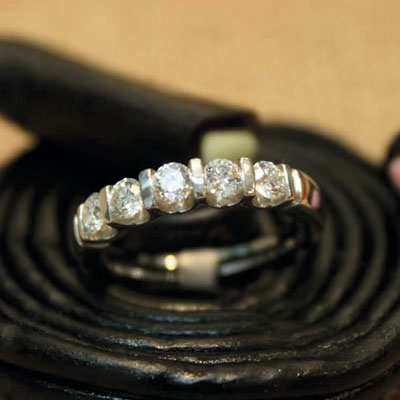 Comme en métallurgie, le travail commence par la fonte des métaux. Vient ensuite l’étape des laminoirs pour en faire de la plaque ou du fil, puis celles des soudures et de l’emboutissage. « Nous avons la chance d’utiliser en joaillerie des métaux nobles tels que l’or, le platine et l’argent qui sont reconnus depuis des millénaires comme des métaux précieux. Afin d’embellir les personnes nous créons des parures personnalisées où on incorpore différentes pierres telles que le diamant, le rubis, les émeraudes, mais aussi d’autres pierres moins précieuses. » Pierre Cabrera crée des bijoux à son goût, qu’il expose en vitrine, et fait du sur-mesure, qui représente 70% de son activité. « Je fabrique à la demande. D’une pierre de famille ou rapportée d’un voyage, je crée un bijou. »