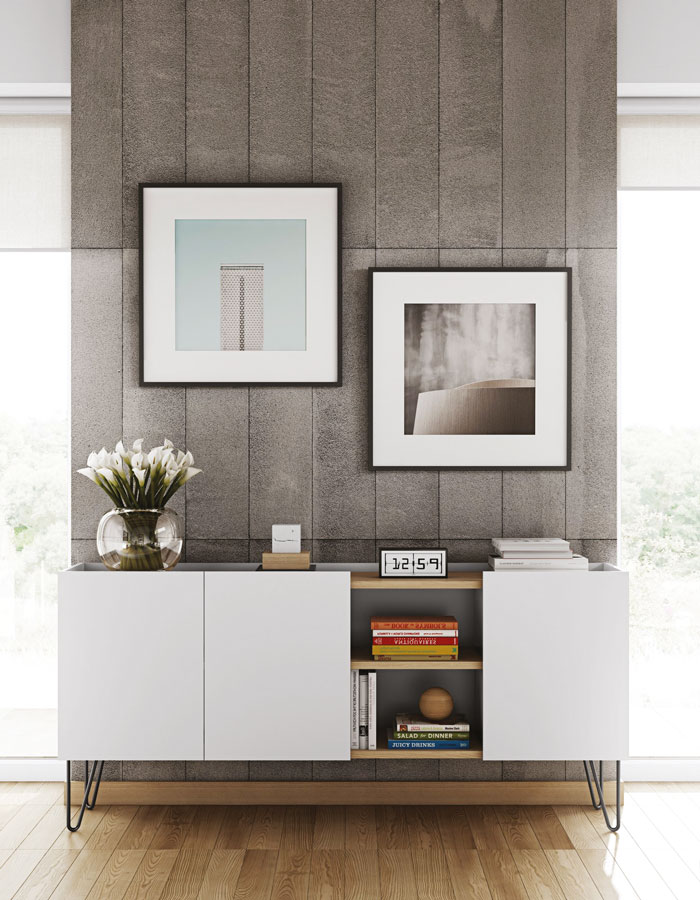 Meuble avec panneaux laqués et placage chêne Nina de chez Temahome.2019