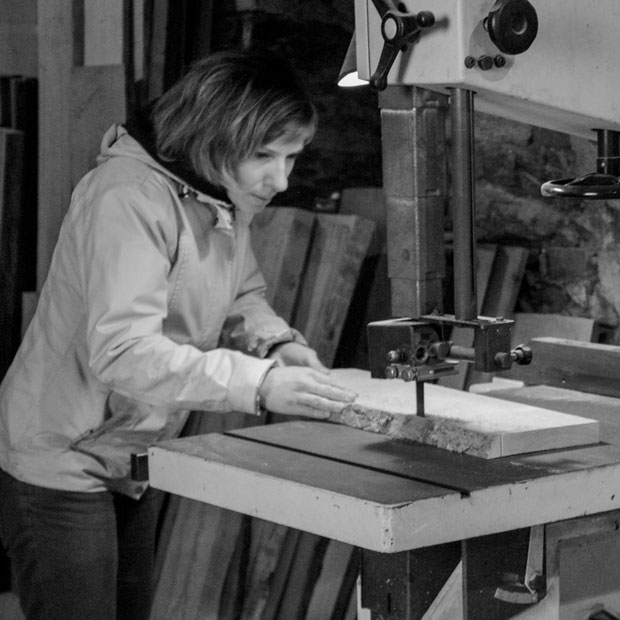 À travers son métier, Cécile Barra défend des valeurs auxquelles elle croit dur comme fer. Créer des meubles uniques, beaux, durables, fonctionnels et sains. Cécile Barra dans son atelier. « L’odeur du bois est plus intense lorsque je le scie. » Sur les établis, poussière et copeaux de bois entourent ses outils, ciseau