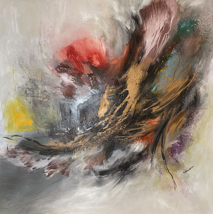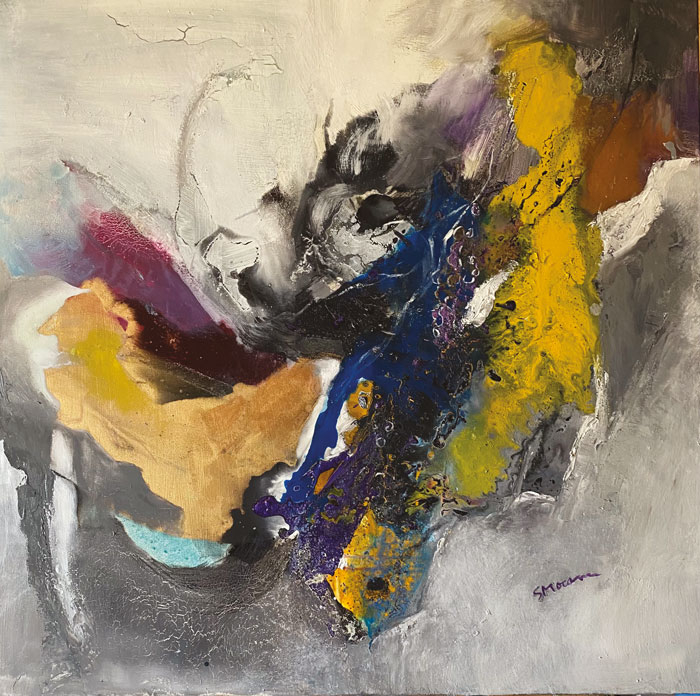Steliana Mocanu présente un univers pictural en parfaite adéquation avec sa propre nature. Cette artiste peintre empreinte de spiritualité, offre à voir une oeuvre abstraite comme autant d’explosions de lumière jaillissante. De sa Roumanie natale, Steliana Mocanu a gardé cette énergie constante, douce et paraissant maîtrisée mais dont on sent le feu sous les cendres…Sa peinture est bien le reflet d’une artiste sincère, chaleureuse mais audacieuse et exigeante. Ses compositions, l’équilibre des formes et des couleurs et par instant, une dynamique de couleurs qui attire l’œil au cœur de son tableau. Là, est la vie, là est son rapport au cosmos, à cette proposition qu’elle nous expose : ce qui est plus grand que nous !