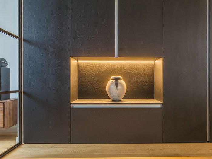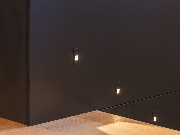 Lumière sur les détails. Des spots sont parsemés dans la demeure familiale. « Un profond travail a été réalisé sur l’éclairage», confie l’architecte.