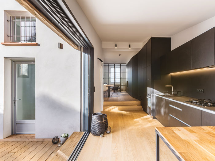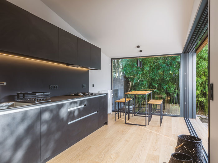 Extension. La cuisine a été placée dans une extension de l’habitation sur la terrasse.