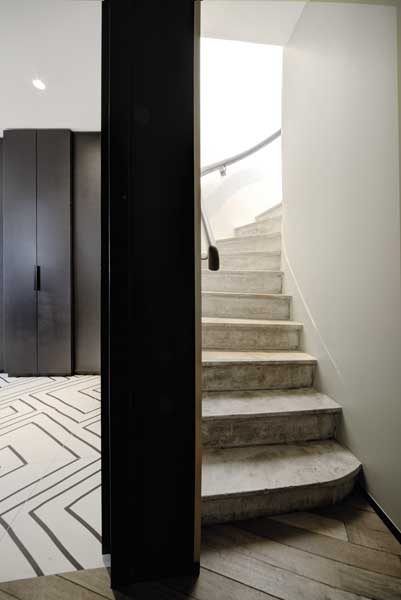 Entre la Halle aux grains et le Jardin des plantes, un couple, la trentaine, acquiert un appartement de 90 m² au dernier étage d’un immeuble des années 1930 remarquable. En acquérant également le toit-terrasse pour y construire une surélévation, le couple optimise la capacité de surface maximale et s’offre des vues imprenables sur les toits de ce quartier historique. Sur le papier, le projet fait rêver. Mais qui pour le mettre en musique ? Qui pour transformer un toit-terrasse et un appartement dans son jus mal orienté (les chambres au sud, le salon au nord) en un duplex élégant ? D’autant que les Bâtiments de France interdisent ici une surélévation, à moins qu’elle n’épouse côté rue la pente des toits.