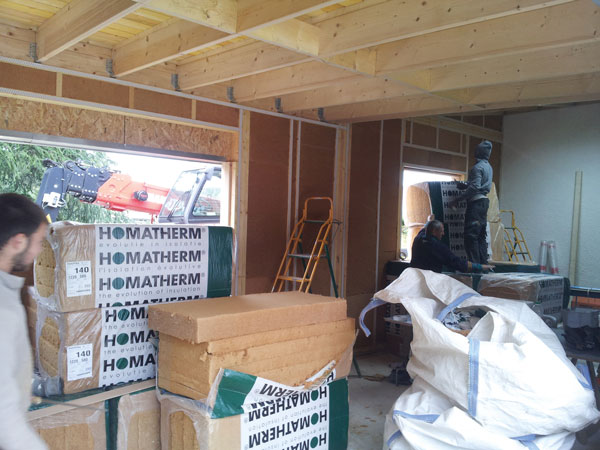 L’isolant en fibre de bois Homatherm est posé entre les montants de l’ossature.