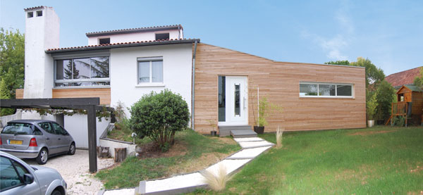 « Dans mon quartier, se souvient Jean-Christian, j’avais repéré une extension récente parée d’un bardage en bois. J’ai tout de suite pensé que cela s’intégrerait très bien chez nous. » Jean-Christian se renseigne auprès des propriétaires qui lui donnent le nom du charpentier, monsieur Gaspin, dont ils ont été très satisfaits.