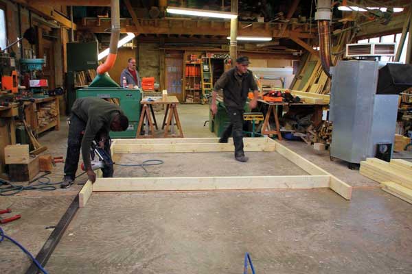 1. Les murs ossature bois pré assemblés dans l’atelier de Sébastien Gaspin.