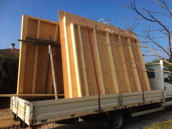 2. Livraison des murs sur le chantier.