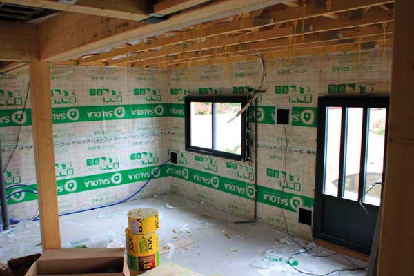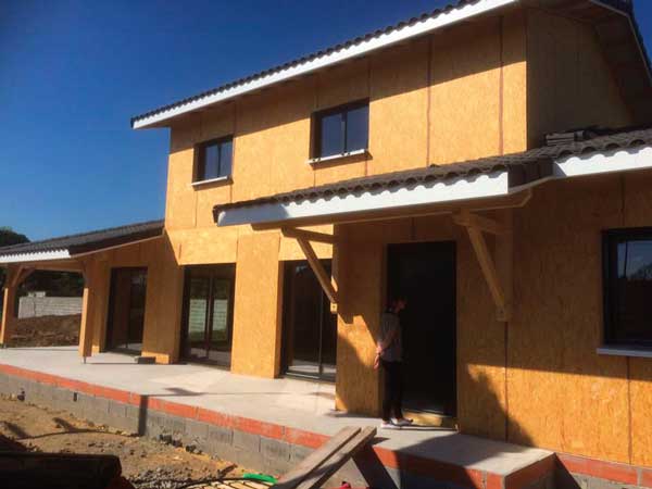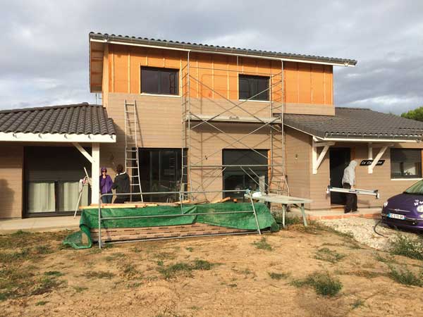 4. La toiture et les menuiseries installées, la maison est dite hors d’eau hors d’air. Isolation par l’extérieur.