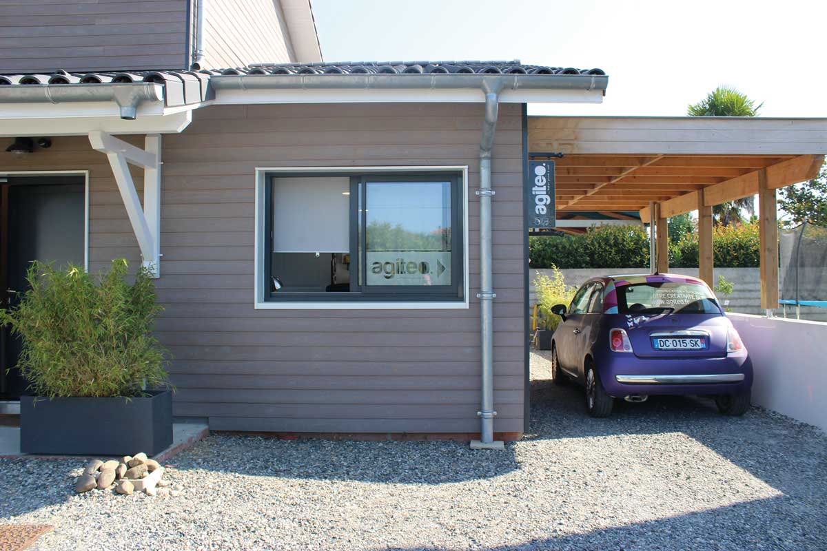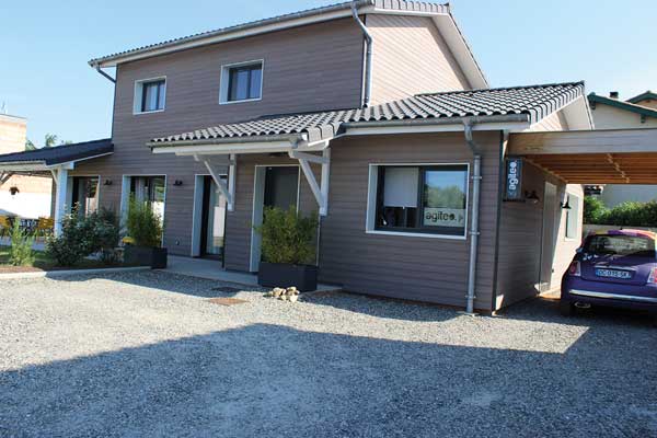 À Seysses, Émilie et Cédric, la trentaine, achètent un terrain de 800 m² pour y construire leur habitation. Le couple y installera également les locaux de son agence de communication Agiteo. Construire en bois les séduit. « Nous voulions une maison moderne tout en profitant de l’aspect chaleureux et convivial du bois. » Le projet est confié à l’entreprise de charpente Sébastien Gaspin, spécialisée dans la construction d’extension et de maisons à ossature bois. Cela fait 40 ans que la famille Gaspin travaille le bois. Après Henri et Jean-Louis, c’est désormais Sébastien qui dirige l’entreprise de 4 salariés, située à Cugnaux. La société est qualifiée Qualibat et RGE et propose son savoir-faire artisanal aux particuliers : extensions, surélévations, charpente, couverture, terrasses, escaliers… Le souhait d’Émilie et Cédric peut se résumer ainsi : une pièce à vivre avec de beaux volumes au rez-de-chaussée, les chambres à l’étage et, enfin, un grand bureau pour accueillir leur activité professionnelle.