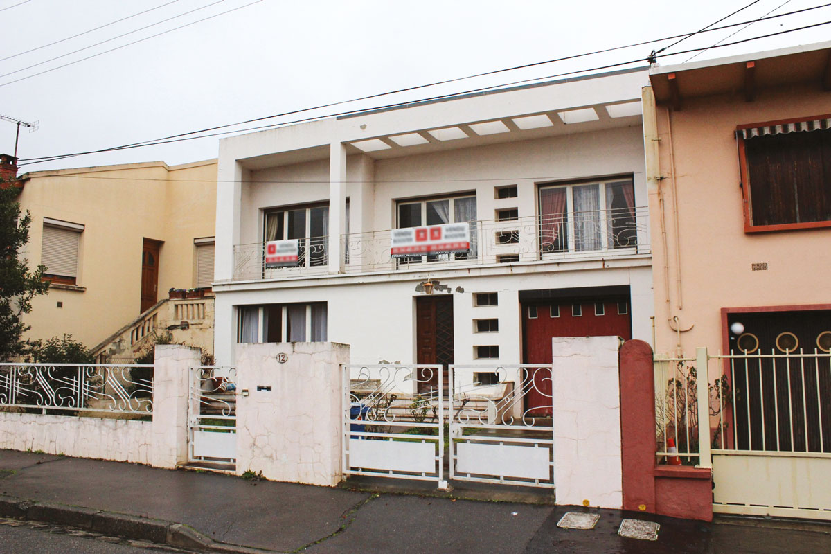 La maison avant travaux. Côté jardin, ferronneries tout en courbes. Le jardin n’est pas exploité.