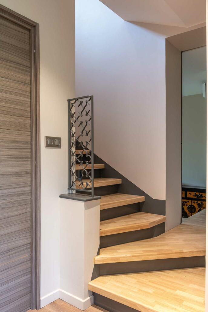 Dupont agencement a recouvert les marches de l’escalier d’origine en granito avec du lamellé-collé.
