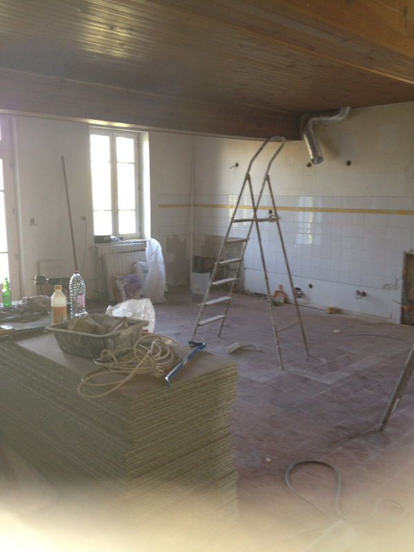 L’état des lieux en aurait découragé plus d’un. « Le toit était mort, se souvient Dominique. Il y avait des infiltrations partout, et de l’électricité uniquement sur une partie, qui plus est, bricolée. Les plafonds commençaient à s’effondrer, toutes les fenêtres étaient cuites. Il n’y avait ni chauffage, ni assainissement. » Isabelle se souvient d’un détail : « Il n’y avait plus une poignée aux portes ». Et pour cause, la maison avait été pillée.
