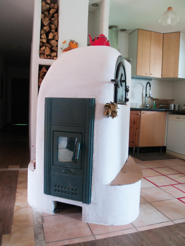 Le chauffage. Impossible de chauffer avec une cheminée ouverte et le couple ne veut pas de radiateurs électriques. Il opte pour un poêle de masse bouilleur