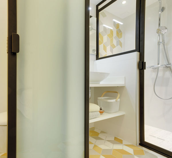 Le logement compte 3 verrières. Une entre la chambre et le séjour, une autre entre l’entrée et la cuisine et une dernière dans la salle de bains. Elles ont été créées par Façon Métal (Toulouse).