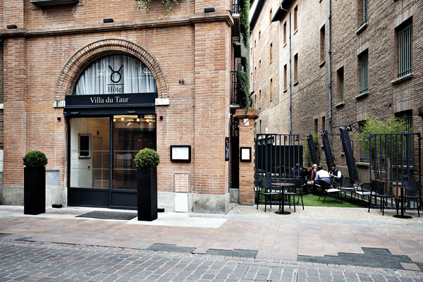 Si votre curiosité vous conduit rue du Taur, vous trouverez facilement l’hôtel avec sa façade en briques rouges toulousaines et son emblème : une tête de taureau stylisée.