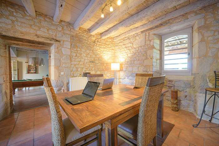 Cinq suites, deux appartements, des salons intermédiaires, un cabinet de curiosité, une salle de restaurant, une salle de jeu, une piscine chauffée… le confort contemporain ne renie rien de l’âme véritable des lieux.